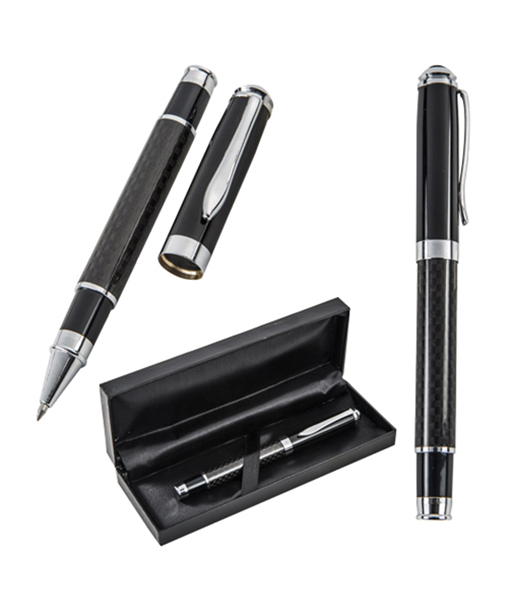 Bolígrafo de fibra de carbono, con tapa metálica con estuche