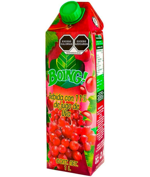 Boing de Uva de 1 Litro es elaborado con jugo de fruta traída directamente de los campos mexicanos, adicionado con calcio, hierro y vitaminas A, B1 y C, es refrescante y delicioso, además cuenta con envasado aséptico que permite mantener su frescura.