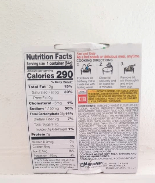 Sopa instantánea Maruchan Sabor a Chile lima con Camarones , lista en 3 minutos, 0% ácidos grasos trans, adicionado con hierro y ácido fólico.