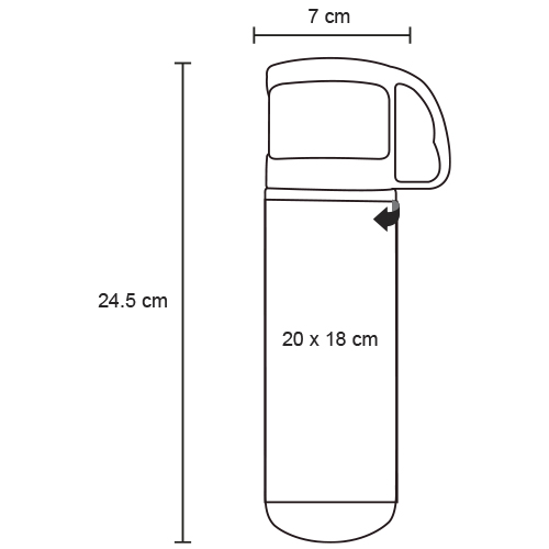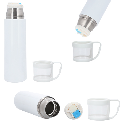 Termo sublimable de acero inoxidable insulado al vacío. Incluye tapa que sirve como taza.