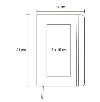 Libreta de poliuretano con 96 hojas de raya, banda elástica para sujetar cubierta y textura.