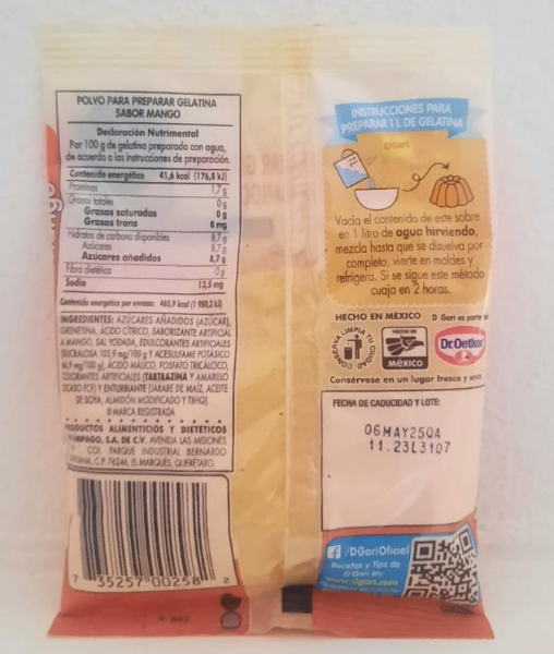 Gelatina en Polvo D´Gari Sabor Mango 120 g