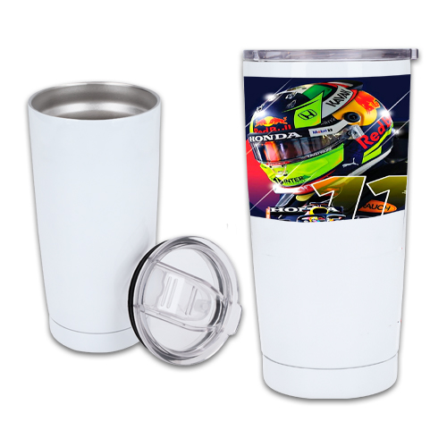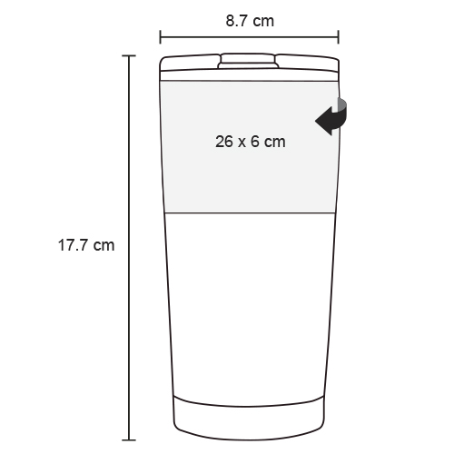 Termo sublimable con doble pared de acero inoxidable insulado al vacío. Incluye tapa de cierre a presión transparente y seguro deslizable.