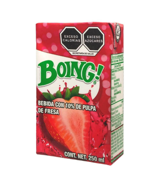 Boing de Fresa 250ml es elaborado con jugo de fruta traída directamente de los campos mexicanos, adicionado con calcio, hierro y vitaminas A, B1 y C, es refrescante y delicioso.