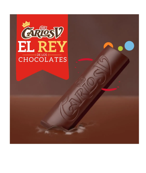 Carlos V es El Rey de los Chocolates, favorito de chicos y grandes, disfrútalo solo o con tu familia y amigos Mantener en un lugar fresco, seco y alejado de aromas que lo contaminen