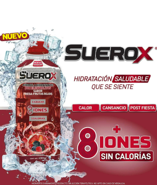 Bebida hidratante Suerox fresa-frutos rojos 0 azúcar 630 ml.
