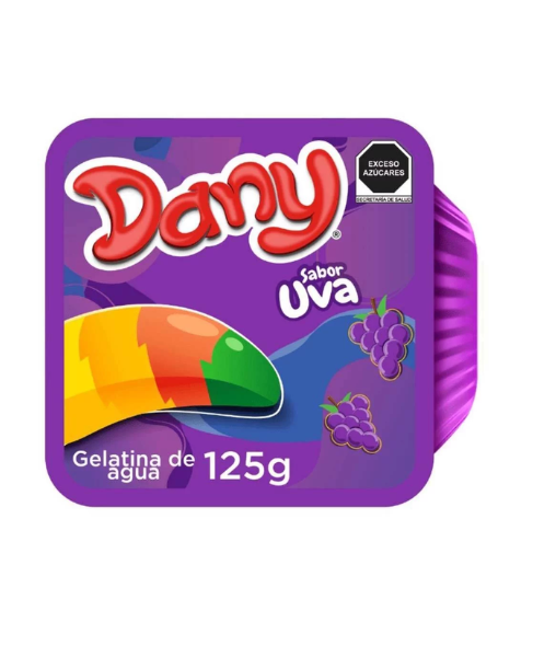Gelatina a base de agua con delicioso sabor uva.
