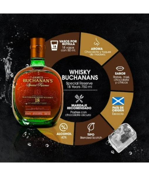 Es la máxima expresión de Casa Buchanan’s. Su mezcla contiene whiskies que al menos fueron añejados por 18 años en barricas de roble que previamente guardaron jerez.