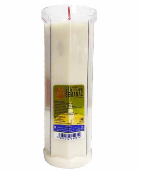 - Veladora San Felipe semanal - Veladoras ecologicas Veladora San Felipe Limonero liso hecha de parafina ideal para iluminar los espacios oscuros o para decoracion, ademas de ser segura por su envase.
