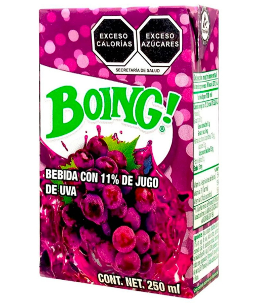 Boing de Uva 250ml es elaborado con jugo de fruta traída directamente de los campos mexicanos, adicionado con calcio, hierro y vitaminas A, B1 y C, es refrescante y delicioso.