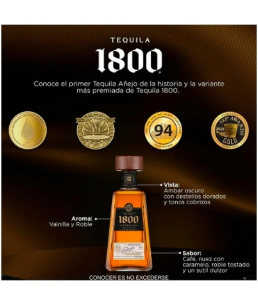 El tequila 1800 añejo es una bebida mexicana representativa, está elaborada con agave azul, tiene carácter y tonos herbales; en boca, su final es picante y redondo con notas de roble tostado, vainilla y caramelo. Envejeció dos años en barricas elaboradas de encino americano y roble francés. Este tequila añejo cuenta con 38% de alcohol por volumen.